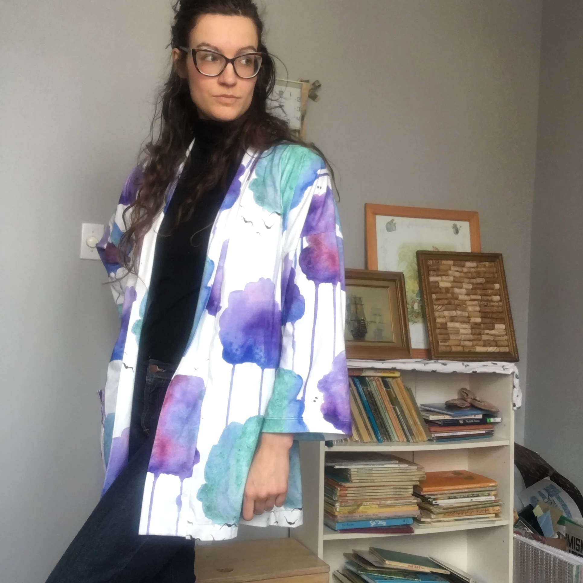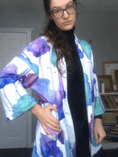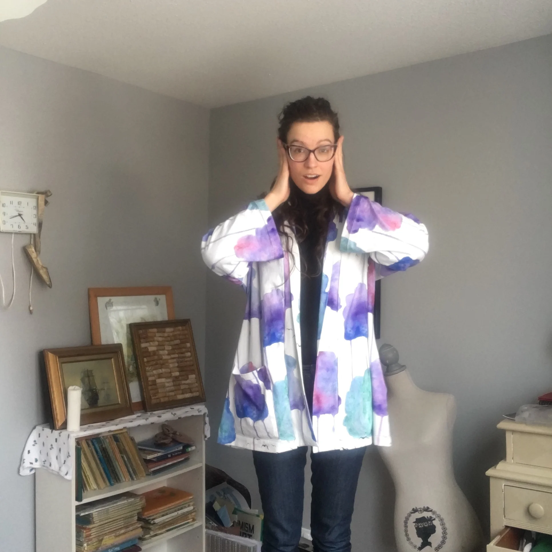 The forgetting meant I also forgot to put in the belt loops, but I haven't finished the sash and am not sure I'll even want to wear it with the sash much, so I'm not too fussed. I really love how the jacket falls without a tie, it feels artful and architectural.